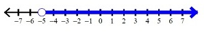 This is read as “r is greater than -5.” This means it includes all numbers greater than, or to the right, of -5 but does not include -5 itself. We will have to show this by using an open circle and having the arrow shoot out to the right.