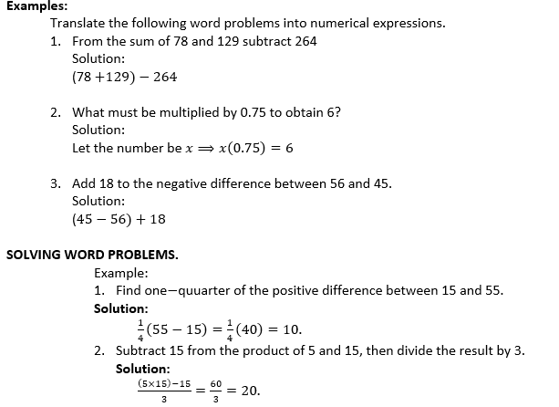 TRANSLATION OF WORD PROBLEMS INTO NUMERICAL EXPRESSIONS.